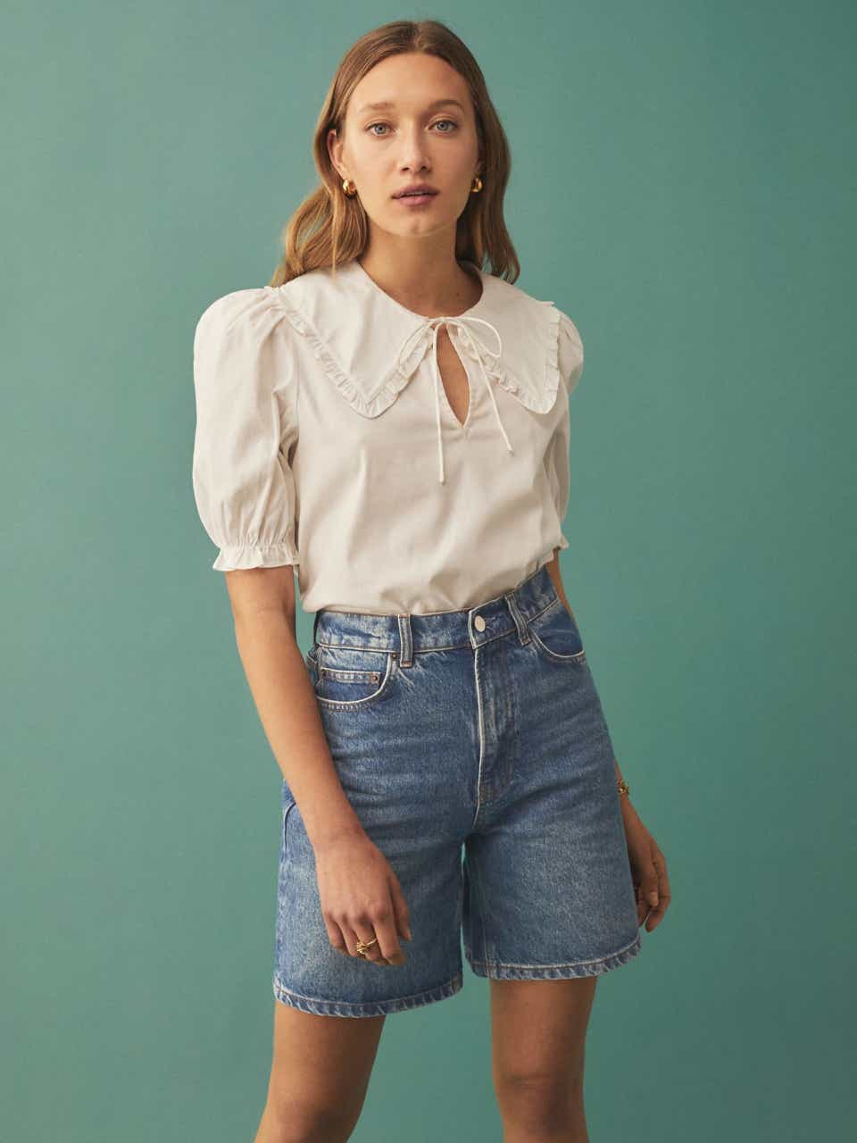 Shorts are a must-have item in summer. Choose a high waist model and combine it with a luxurious ruffle-detailed blouse. Don’t forget to support your action with a pair of boots and a big belt. The key to this style is to make sure all the clothes and accessories you wear are in the same color tone.